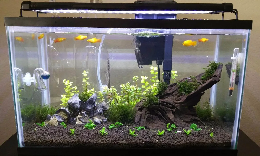 - Использовать лампы на прищепках, которые можно зафиксировать на бортах аквариума
