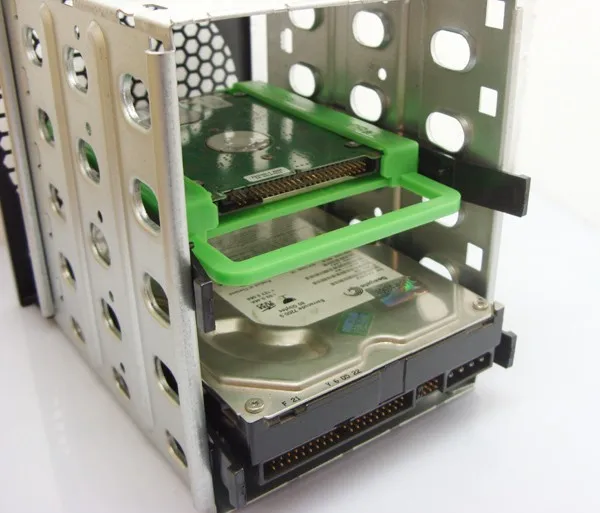 Для крепления диска к корзине обычно требуется четыре винта по бокам или снизу диска. Во многих случаях, особенно для энтузиастов, используются лотки без инструментов, которые удерживают диски с помощью простых штифтов и зажимов.