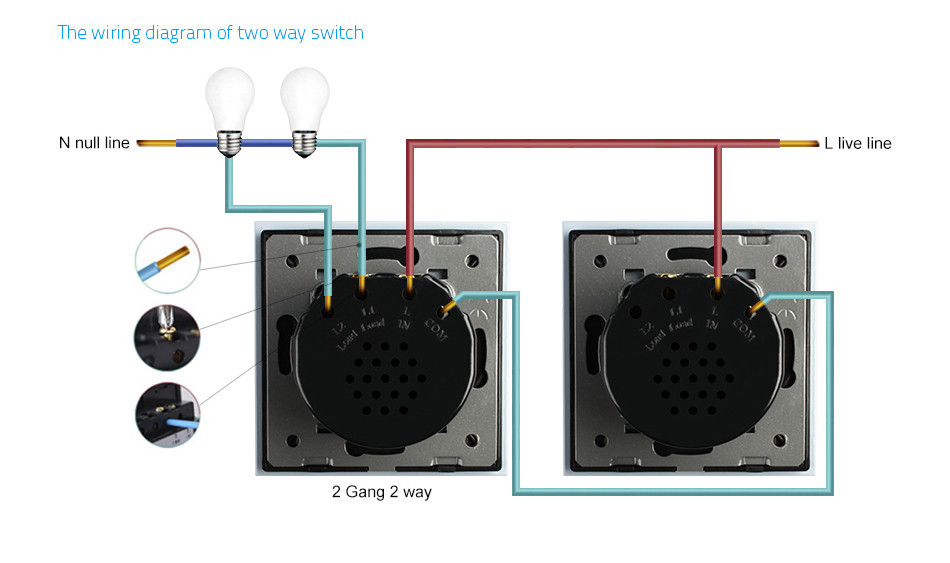 Выключатели используется для управления одной линией нагрузки с двух и более мест.Имеет одну сенсорную кнопку на каждом выключателе, каждая из которых работает в режиме вкл/выкл.В схеме используется Главный и Второстипенные выключатели.Для подключения Главного выключателя используются три клеммы: 1) вход фазы, 2) выход одной линии нагрузки, 3) информационный COM-провод.Для подключения Второстепенного выключателя используются две клеммы: 1) вход фазы, 2) информационный COM-провод.