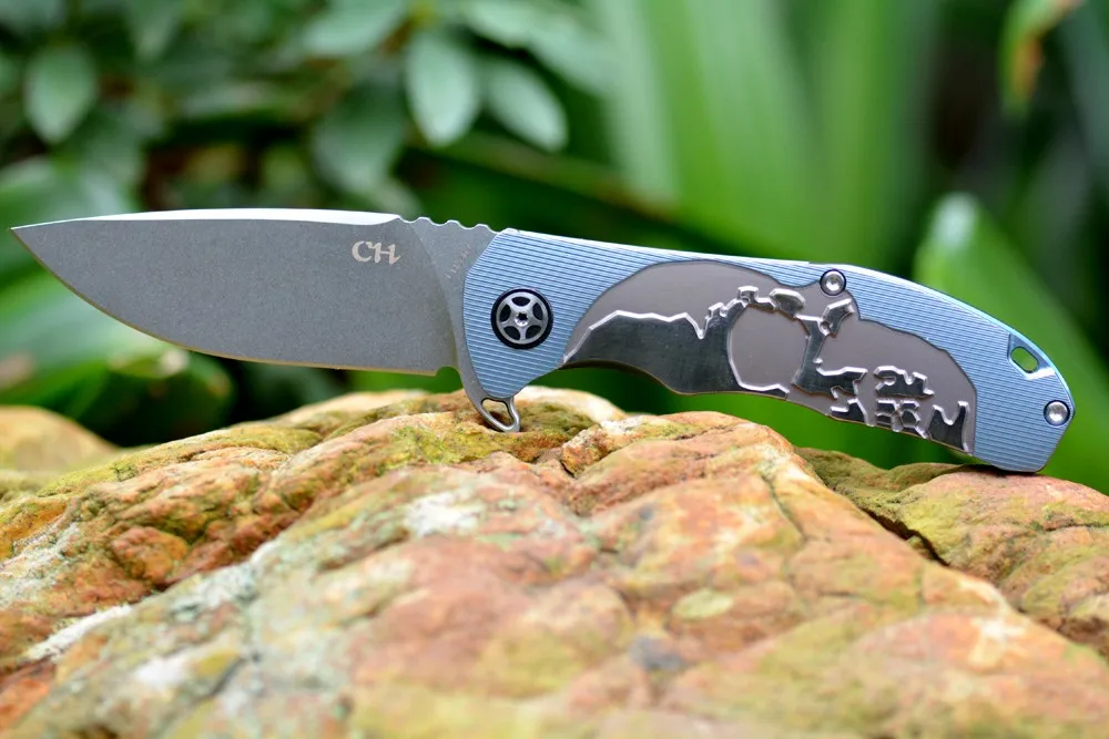 Клинок из порошковой суперстали CPM S35VN закален до 59 по Роквеллу, открывается при помощи флиппера и пары подшипников.