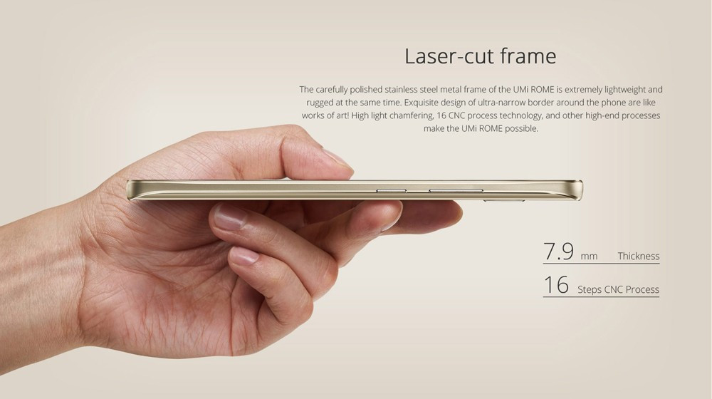 В Umi Rome X характеристика толщины, которая составляет 7,9 мм, знаменательна для фаблета и является значительным достижением для телефона за 60 долларов.