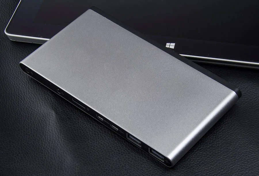 В этом обзоре Vensmile W10 первое, что мы замечаем, это то, что сходство с планшетом выходит за рамки формы устройства. Этот комплект Windows HTPC содержит батарею, что дает ему некоторую автономию в отношении шнуров питания. Однако эта удобная функция компенсируется тем, что зарядное устройство кажется относительно слабым. Это означает, что вы можете разрядить аккумулятор, даже если подключен Vensmile W10. Два порта USB позволяют подключать периферийные устройства, такие как беспроводная комбинация клавиатуры и мыши HTPC и, возможно, внешнее хранилище. Этих портов нет 3.0, так что это слабое место в обзоре Vensmile W10.