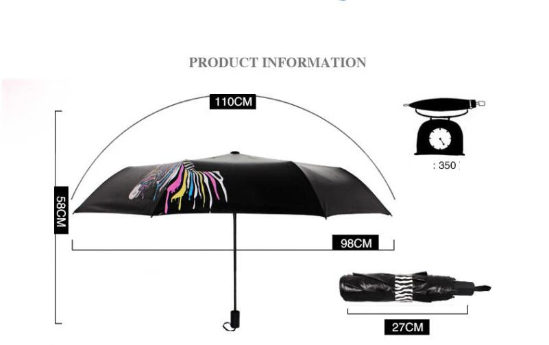 Этот меняющий цвет зонт от Huifeng Umbrellas может быть украшен изображением зебры или капель дождя, которые меняют свой цвет на яркий, когда он намокает, что достигается с помощью особых чернил (гидрохромных чернил). Когда зонт сухой, напечатанное изображение белое, но зебра и капли дождя становятся яркими при контакте с водой. Зонт выполнен в компактном формате, что позволяет легко брать его с собой в поездки, так как он поместится в вашей сумочке или чемодане. Дорожный зонт Huifeng, меняющий цвет, подходит не только для дождливого климата; он также предлагает защиту от ультрафиолетовых лучей. Кроме того, навес сделан из 190T твердый полиэстер с теплопередачей.