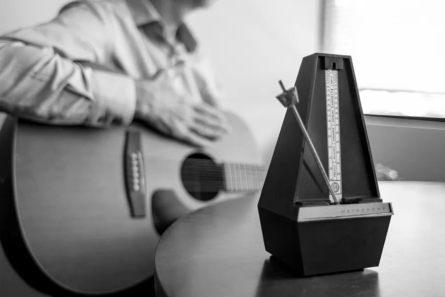 erzeugt, der Musikern hilft, das Spielen mit einem regelmäßigen Puls zu üben
